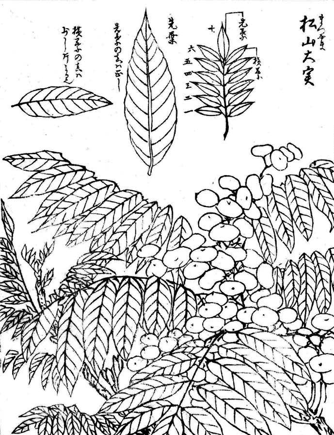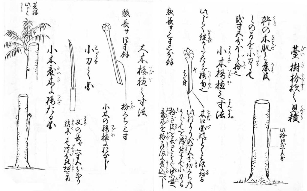 ※左図は高橋善蔵による櫨の木の剪定図。現在においてもこのような剪定が実施されている。